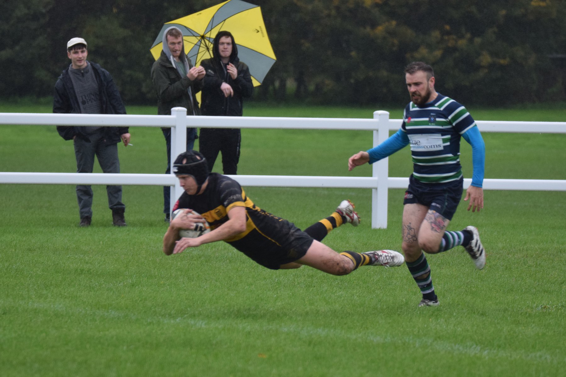 In cold, wet and windy conditions, the kicking game was always going to play a large role in this game, as handling became increasingly difficult. Wallingford had the better of the first half, as their forwards worked hard in the tight, and Charles Campbell kicked well to pin back the visitors. The hosts created several chances, but the only one they converted was an excellent long range effort given the conditions.