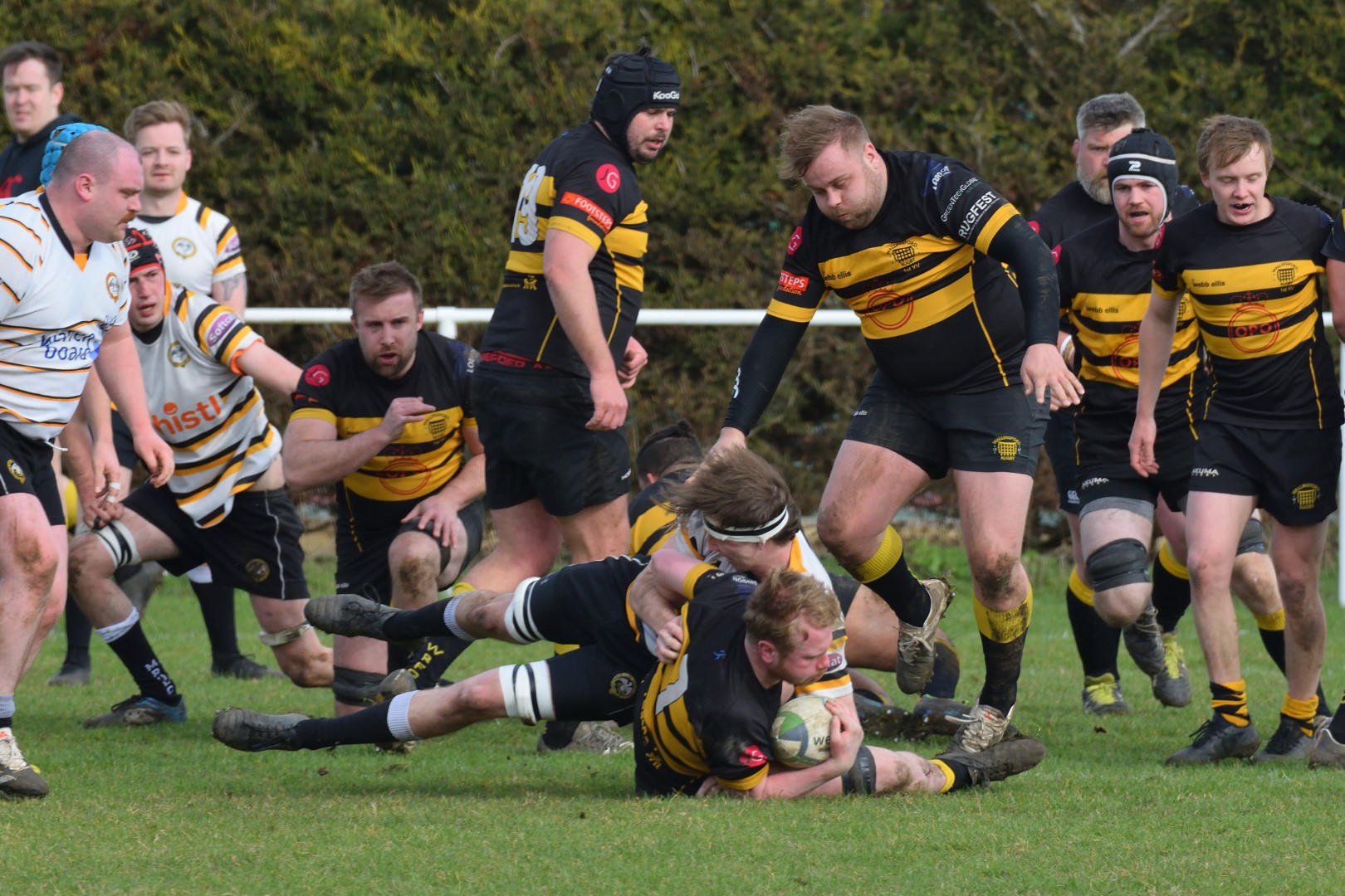 Playing against the wind in the first half, Marlow made a strong start as they launched numerous catch and drives which Wallingford just about kept out. Mostly keeping it in the forwards, Marlow hammered away at the Wallingford line for the best part of 10 minutes, but the hosts’ defence stood up to the challenge as they resisted the early onslaught.